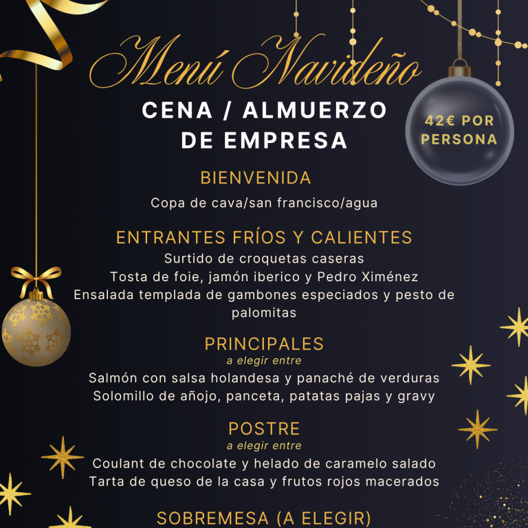 Sorprende a tu equipo con una comida de Navidad que sí van a disfrutar — menús festivos, comida buenísima y muy buen rollo. Ideal para comidas o cenas de empresa.